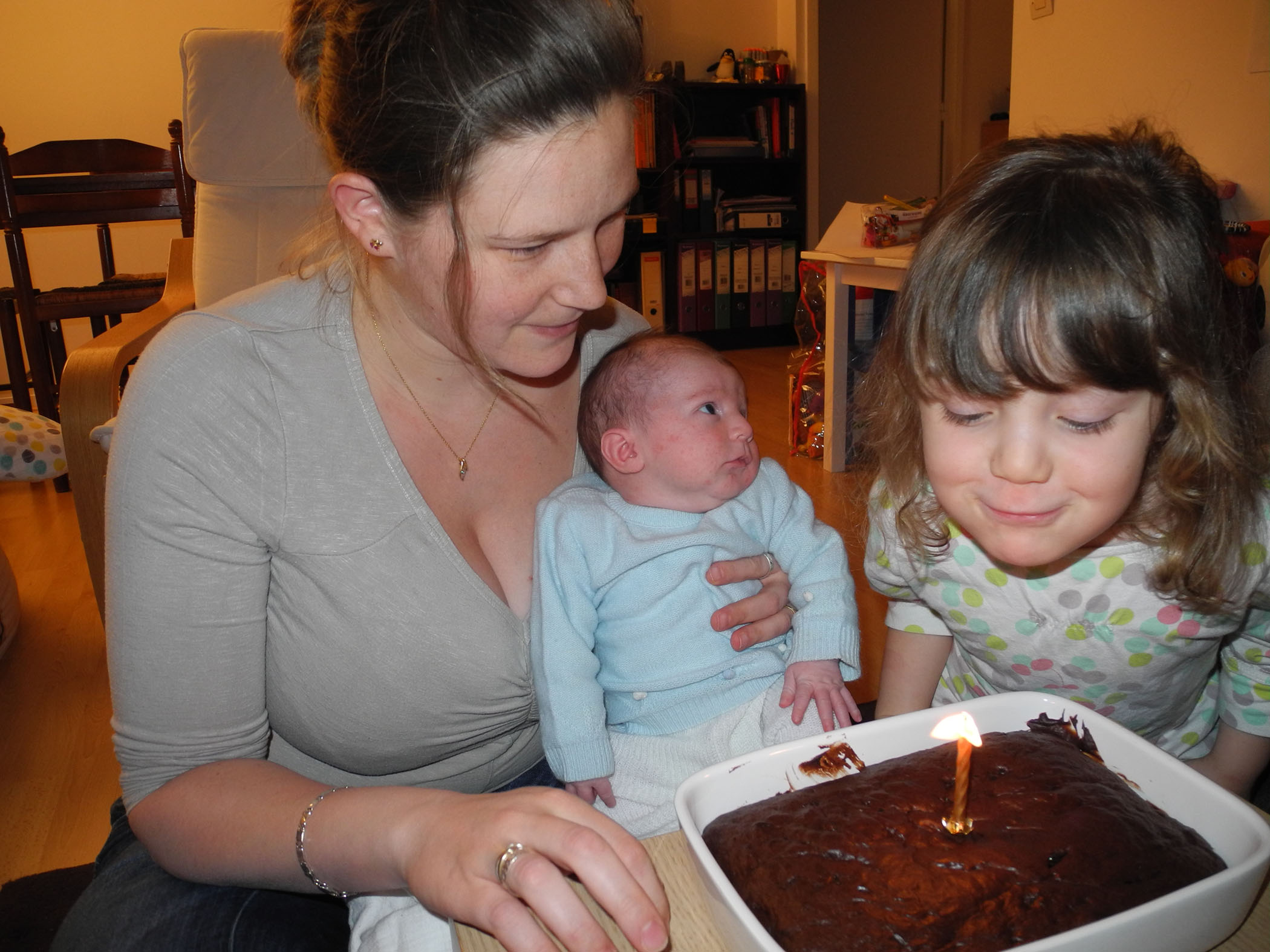 Eléa : Eh bah avec Maman, nous t’avons préparé un gâteau et t’avons mis une bougie à souffler.