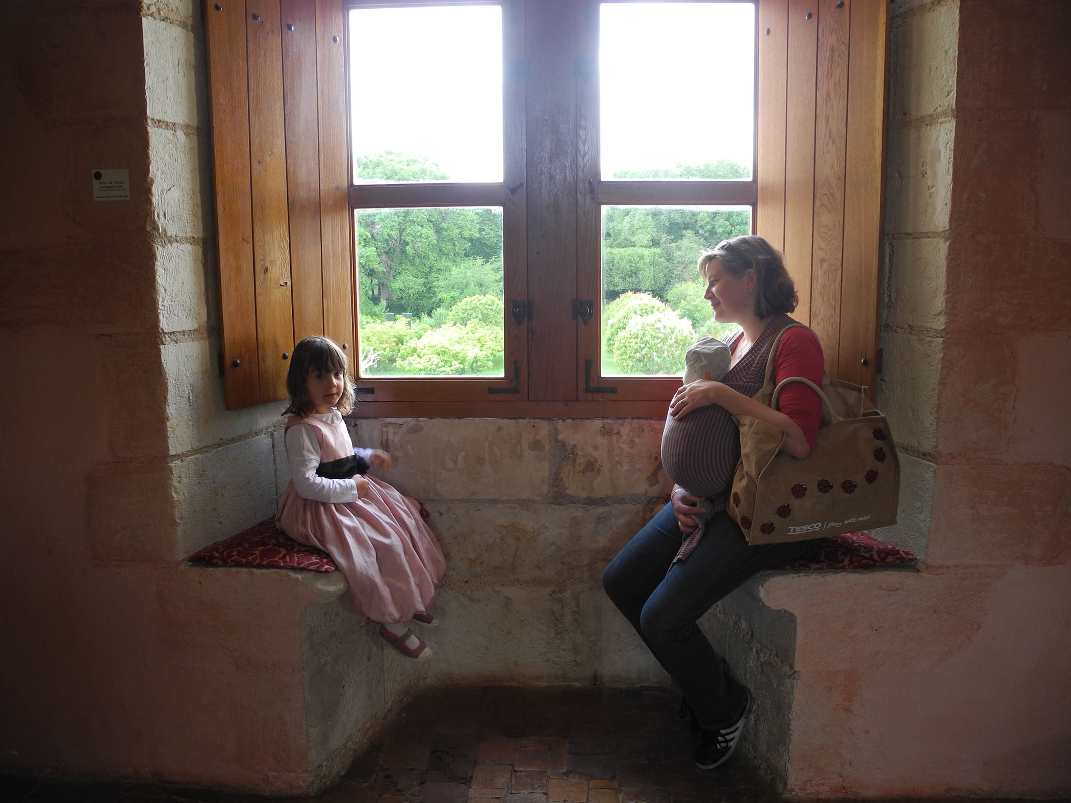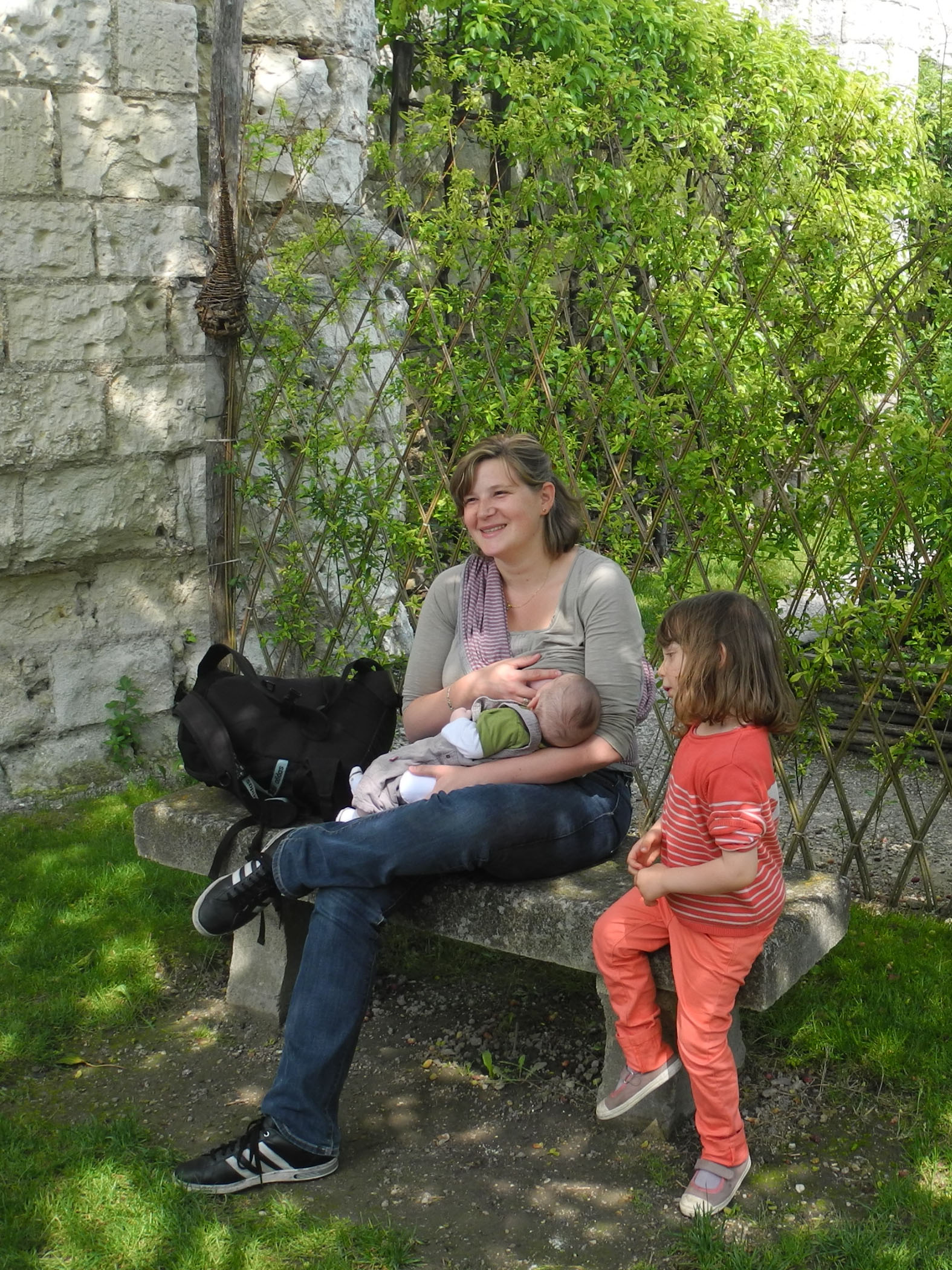 Loann : C’est bien beau les châteaux, mais quand j’ai faim, et bah il faut bien que je prenne ma têtée ! Oooooh un joli coin dans les jardins du château de Loches ! C’est parfait !