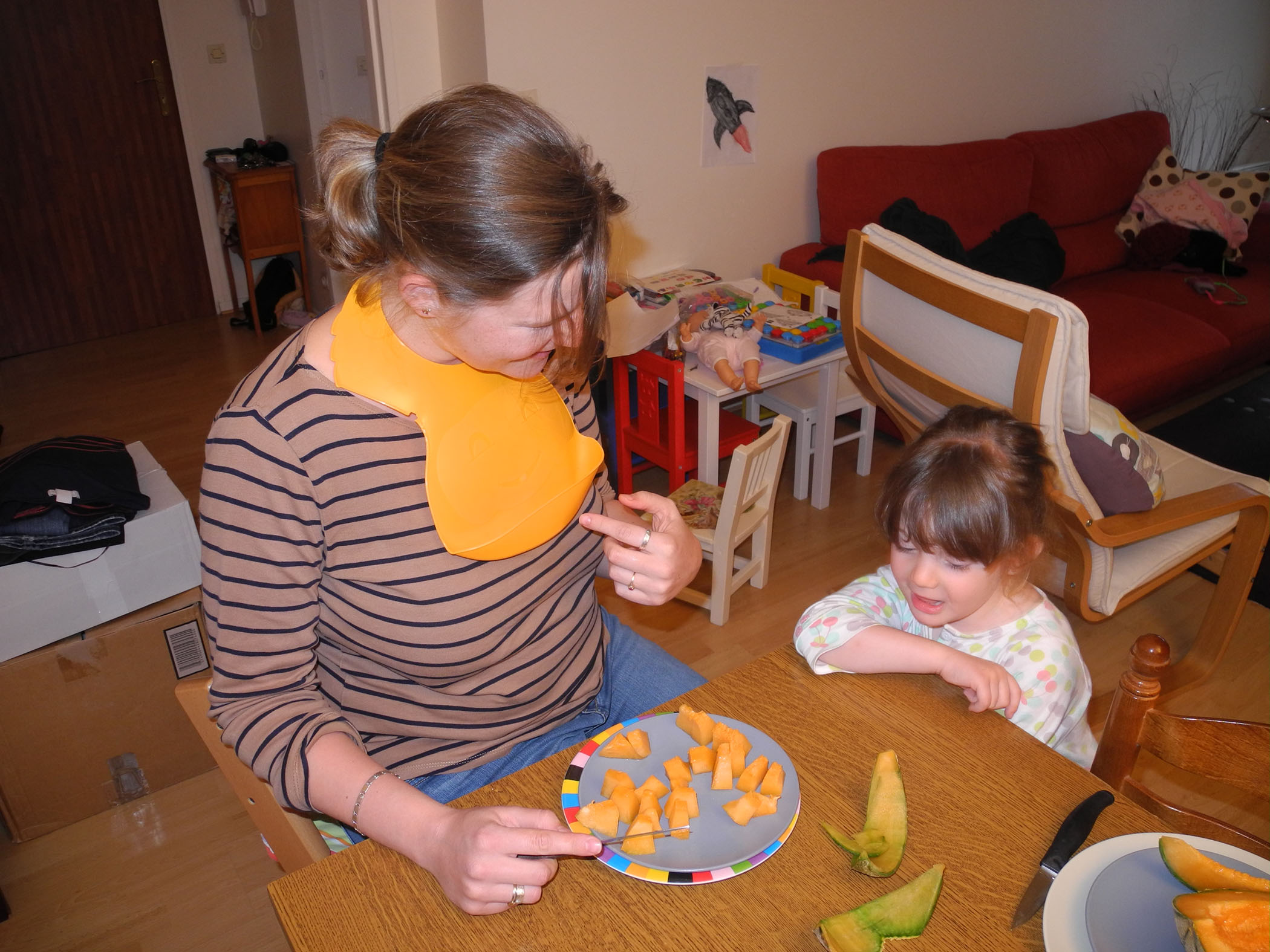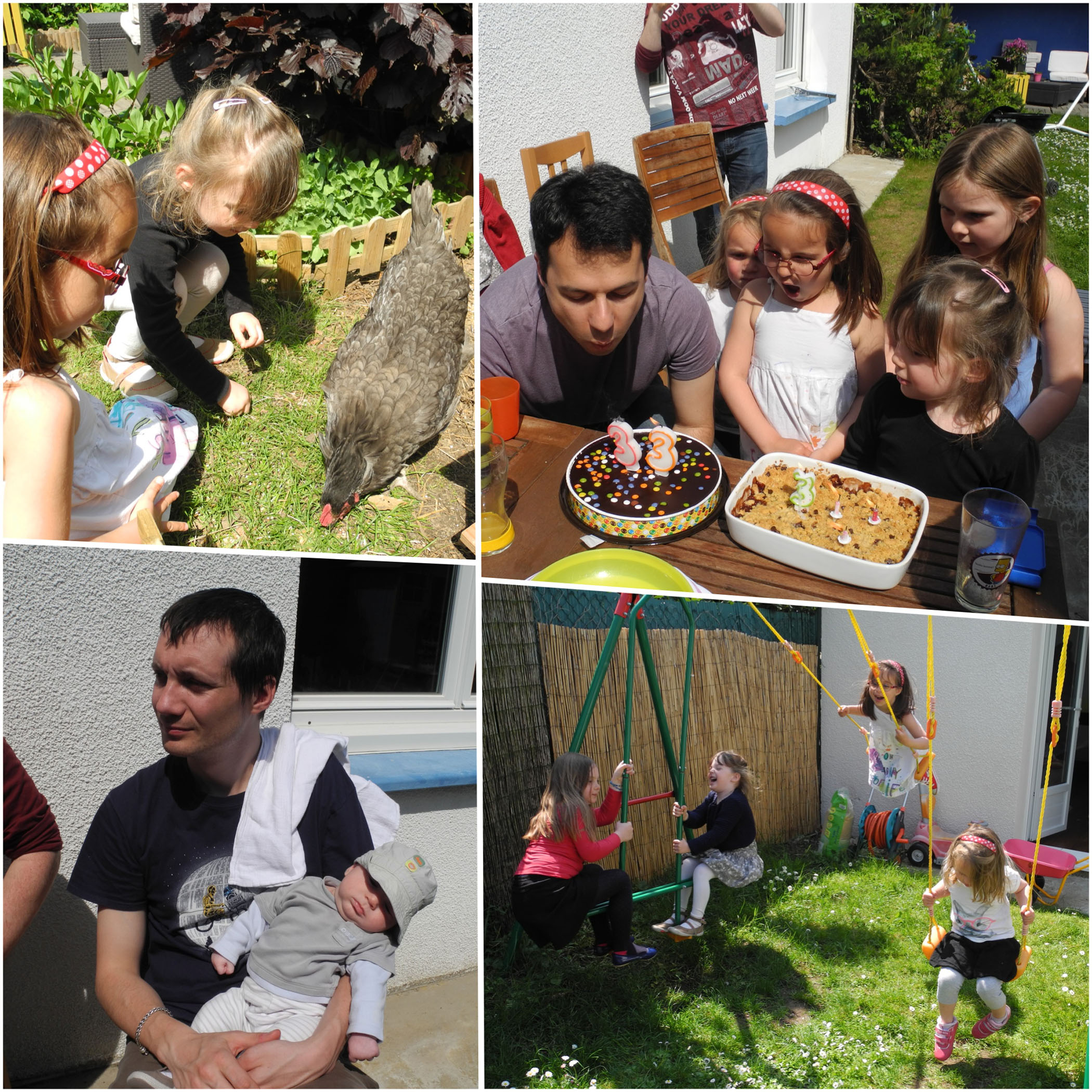 Eléa : On a passé la journée chez Stéphane et Céline et les filles car c’était l’anniversaire de Stéphane. Il faisait super beau alors on a mangé dans le jardin, on a joué à la balançoire, dans leur cabane, avec les poules…etc.