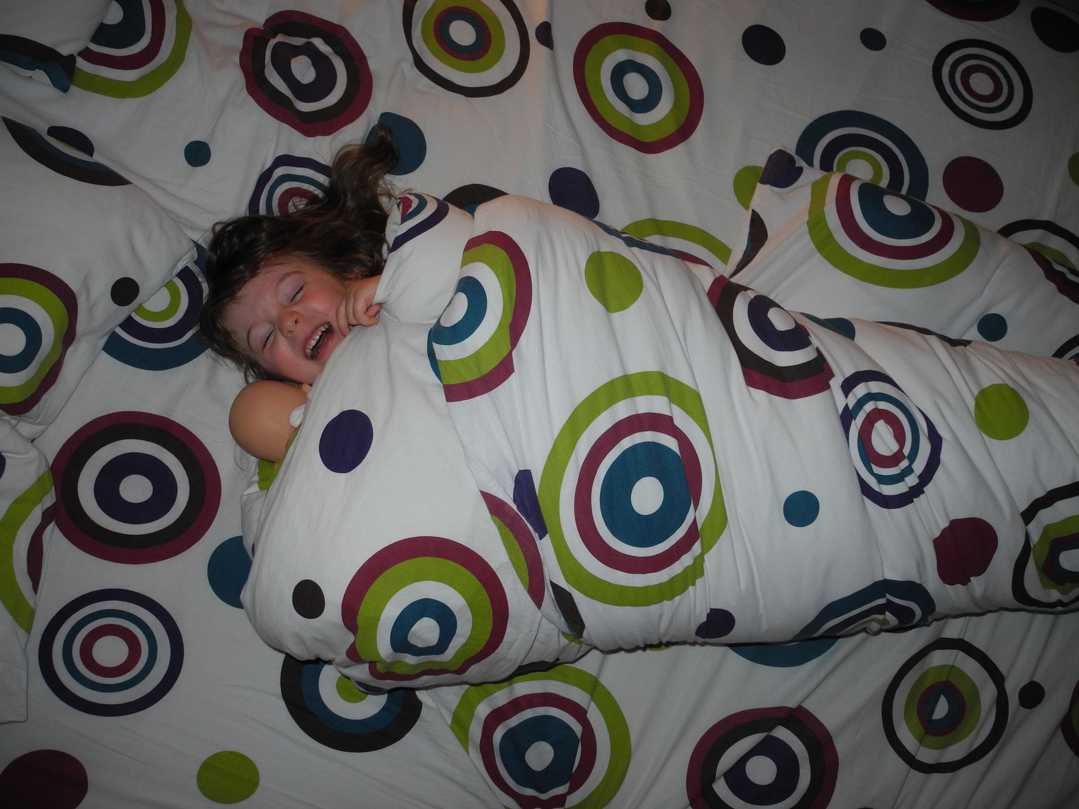 Et voilà, Papa m’a encore une fois enroulé comme un saucisson dans la couette…