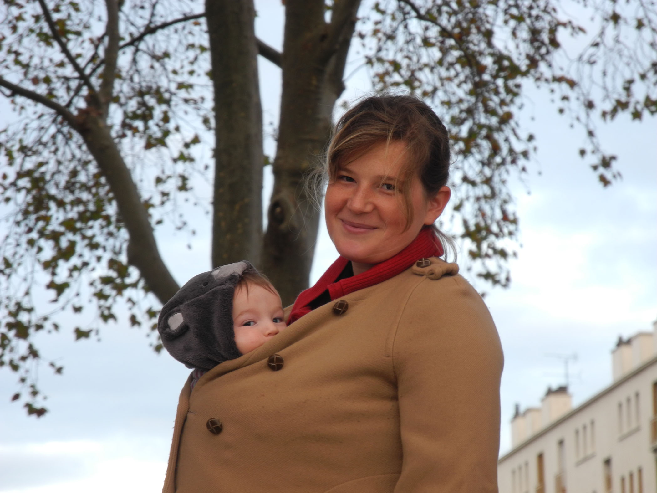 Bien au chaud contre maman, dans l’écharpe avec le manteau par dessus, je risque pas d’avoir froid ! 😀