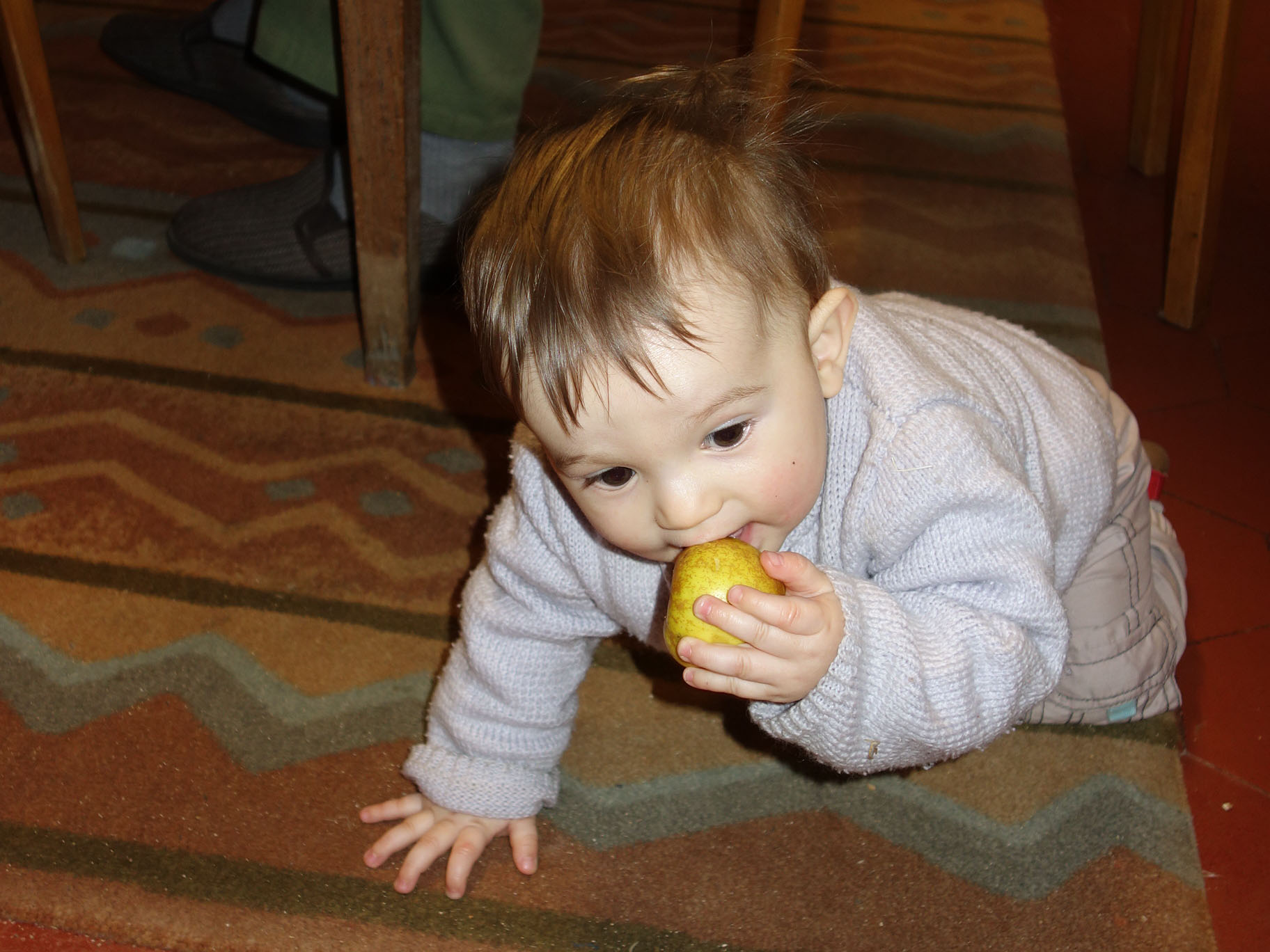 Ca creuse de se balader à quatre pattes, du coup Papi m’a donné une pomme pour reprendre des forces.