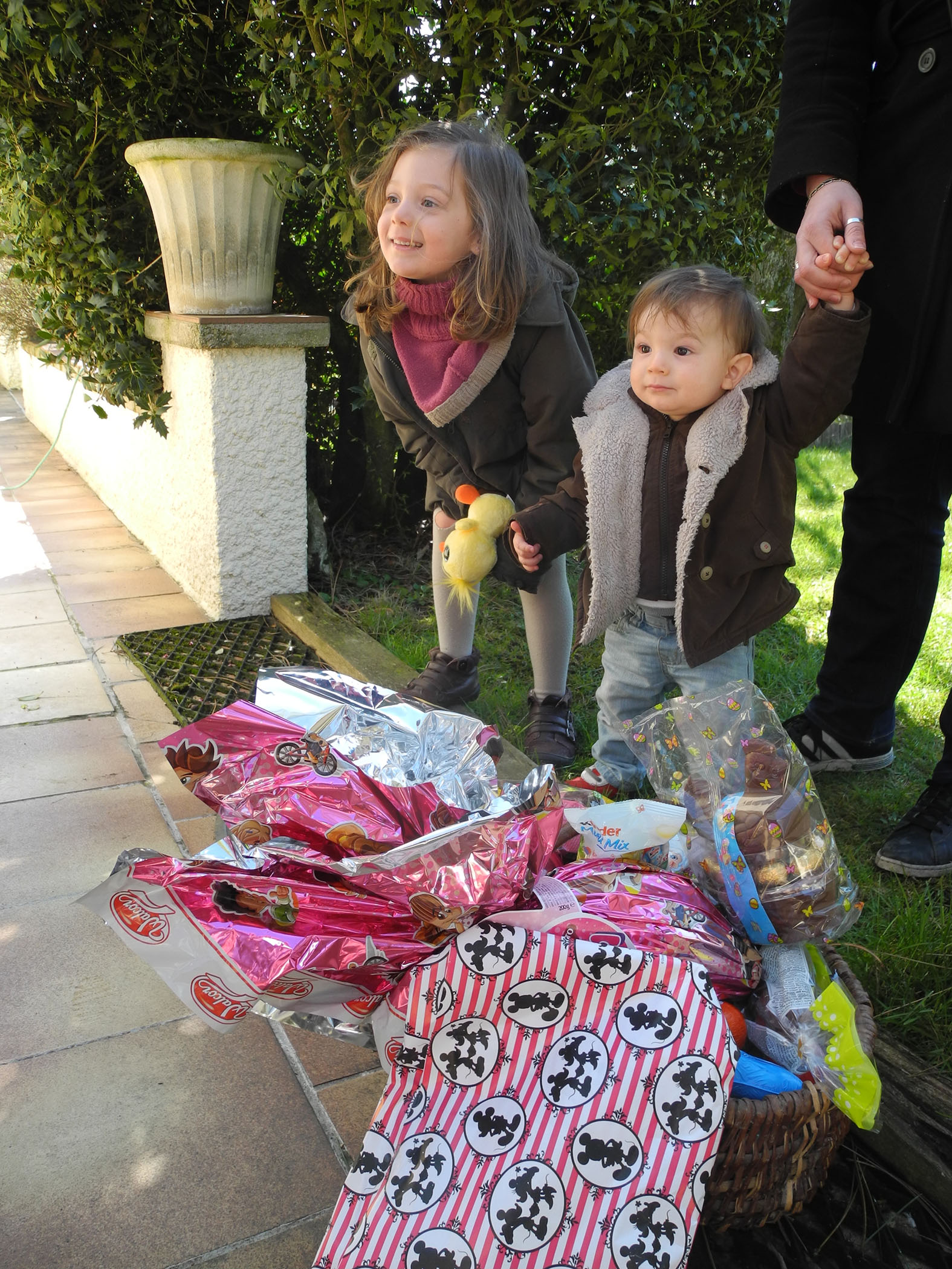 Loann : Les cloches ont été très généreuses car elles ont déposé encore plein de chocolat dans le jardin de Papi Raveton.