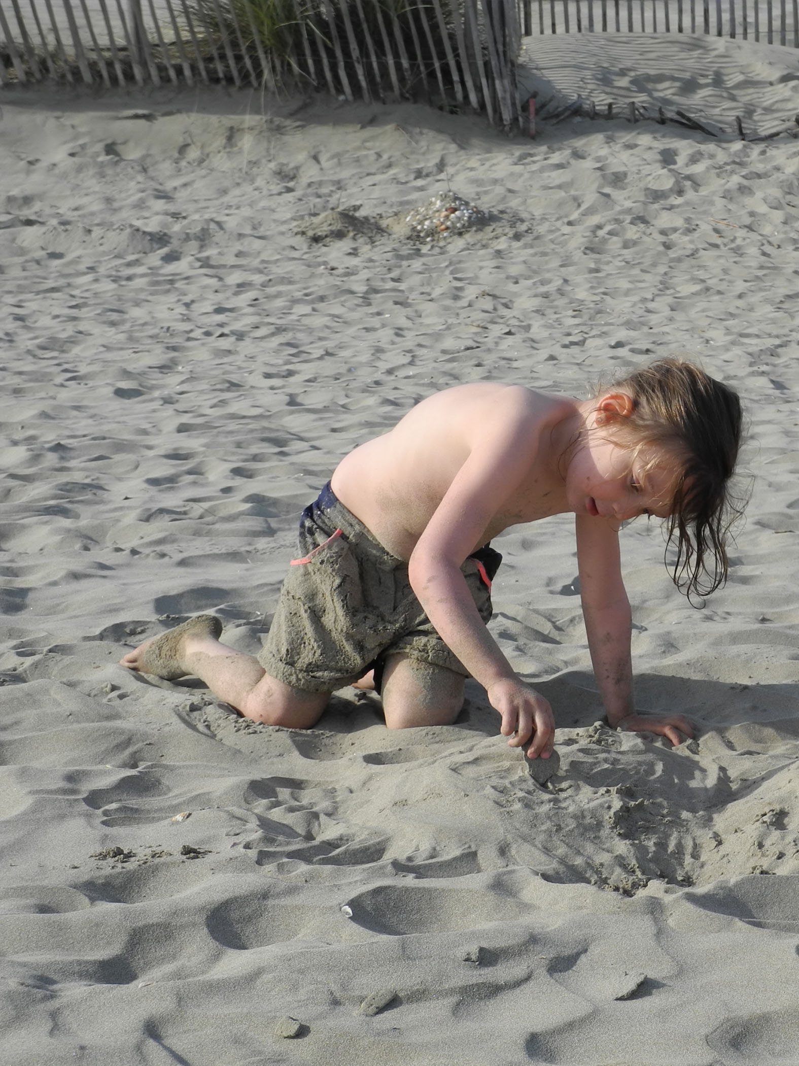Ce qu’il y a de bien à la plage, c’est de jouer avec le sable et de s’en mettre partout ! 😀