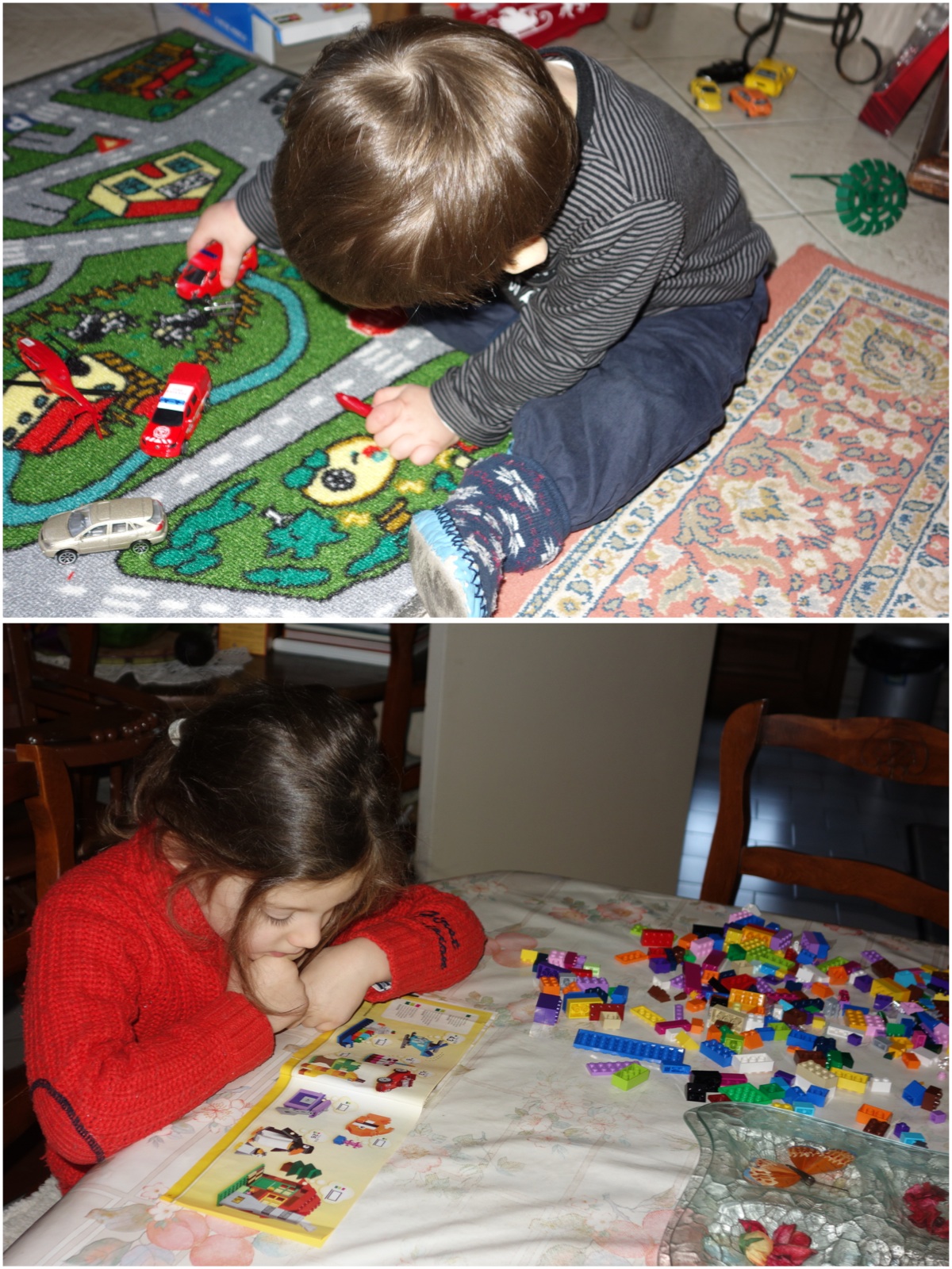 Loann : Après les cadeaux chez Papi et Mami, Papou et Mamoune et à la maison, le Père Noël nous en a apporté chez Papi et Pépé.