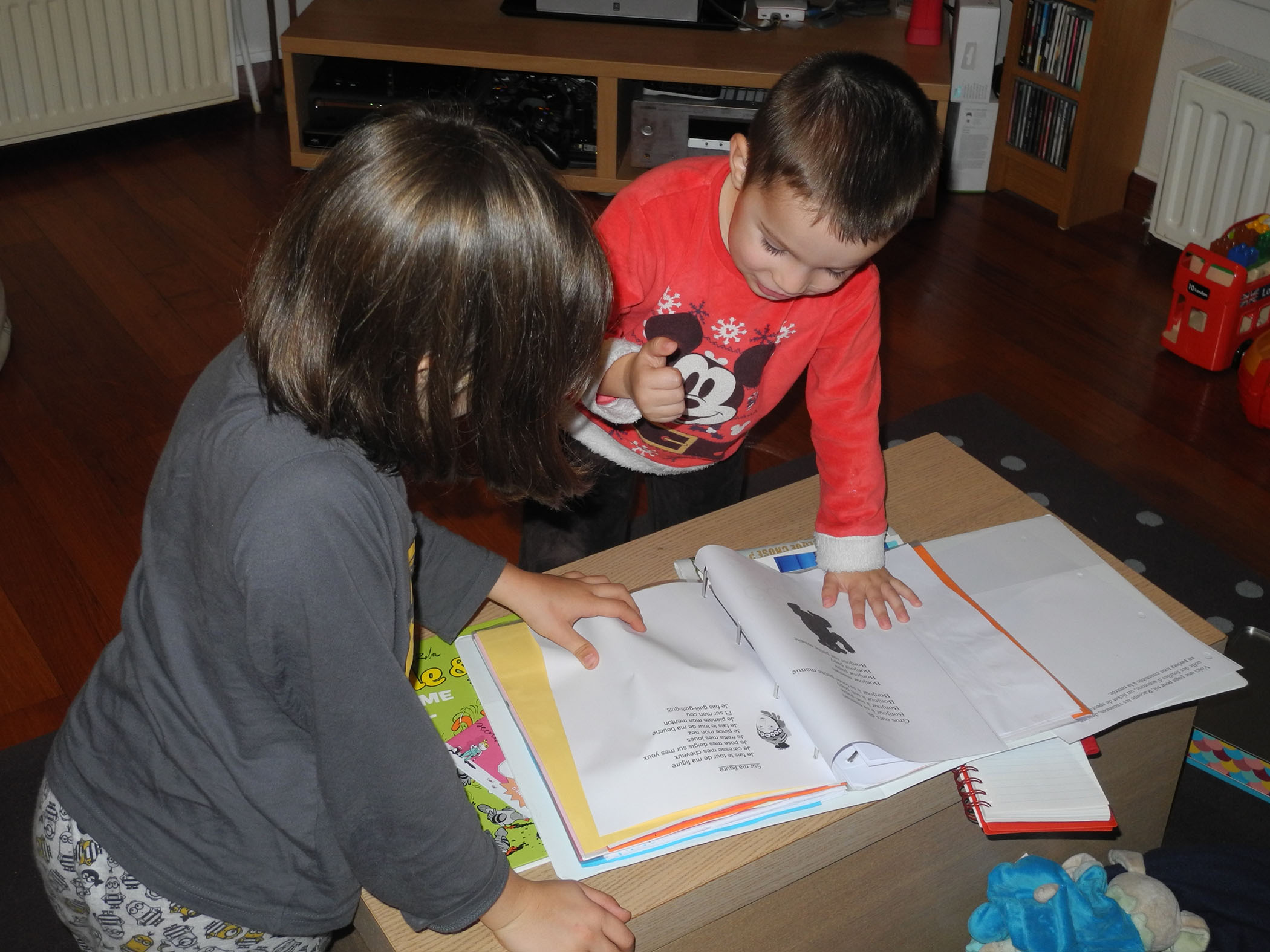 Loann : « Pour les vacances, j’ai rapporté mon classeur d’école. Tu veux le voir Eléa ? »