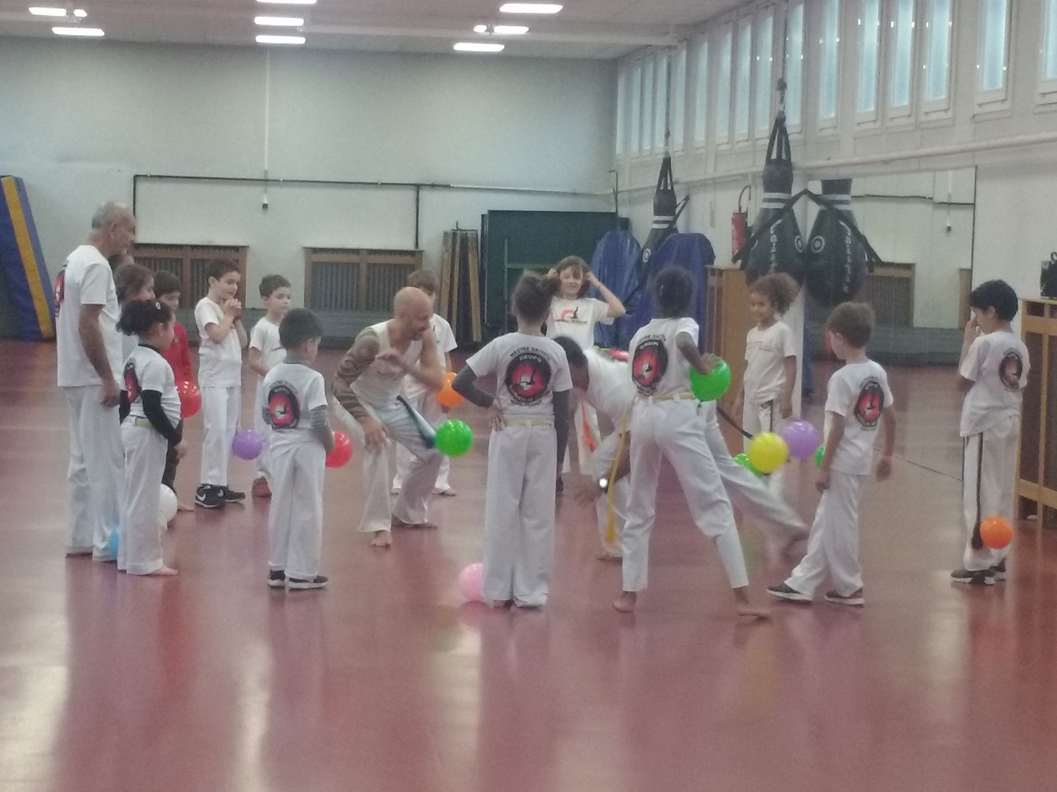 A la Capoeira, nous avons fait un nouveau jeu avec des ballons de baudruche.