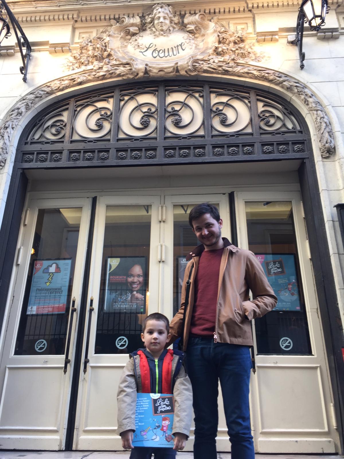 Pour mon anniversaire, Tonton Bastien et Tata Célia m’ont offert un spectacle : l’école des fables. Tout le monde chantait, mais moi, je préfèrais écouter attentivement car les chansons étaient très belles !