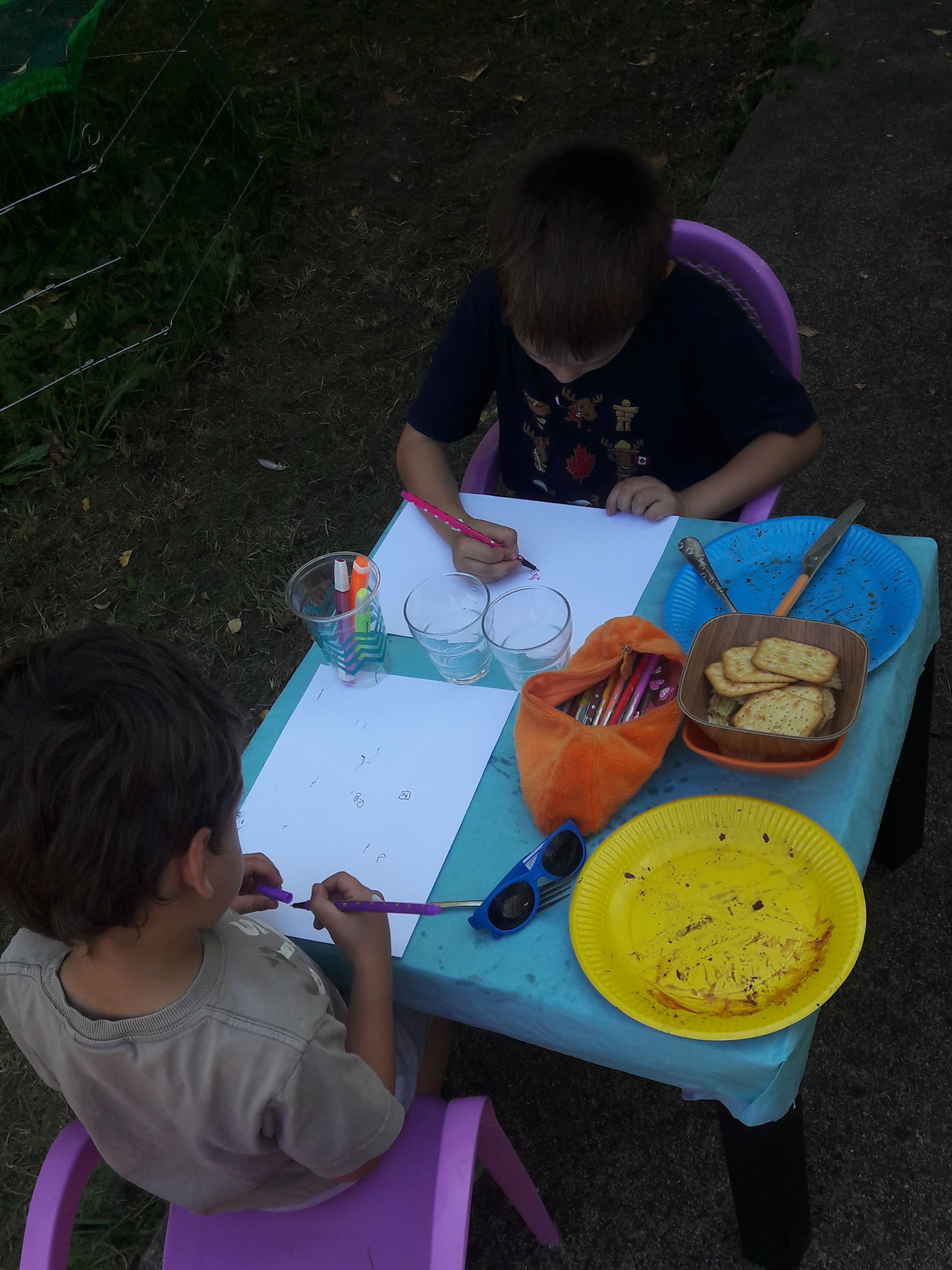 Papou, Mamoune, regardez, j’ai ramené mon cahier de l’école ! On le regarde ensemble pour vous montrer comme je travaille bien ?!
